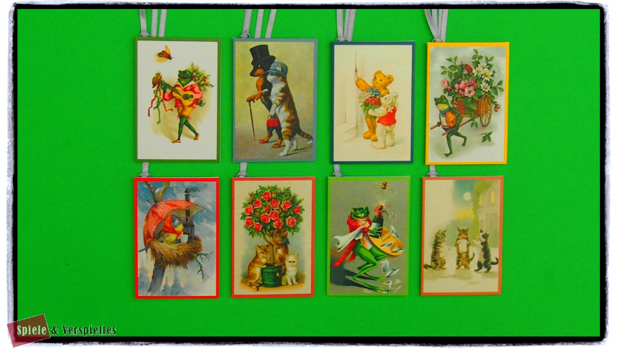 • 8 Geschenkanhänger mit 8 verschiedenen  Motiven vermenschlichter Tiere