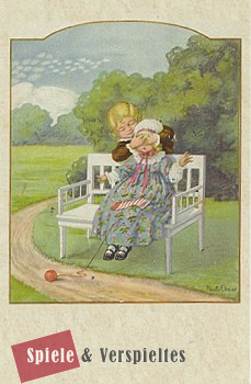 Postkarte vermenschlichte Tiere beglittert 6Vg030