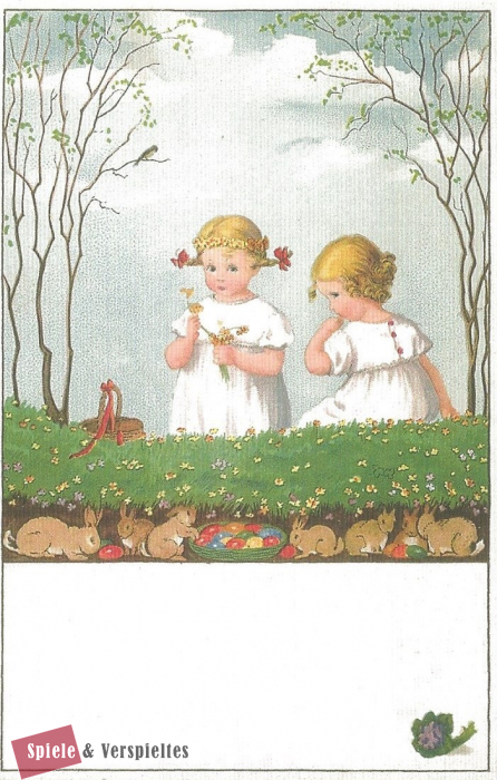 Postkarte  vermenschlichte Tiere beglittert 6Vg004