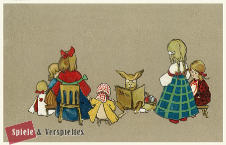 Postkarte vermenschlichte Tiere beglittert 6Vg034
