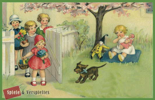Postkarte vermenschlichte Tiere beglittert 6Vg030