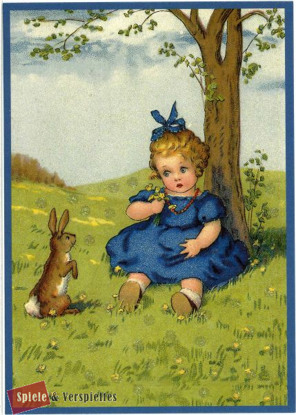 Postkarte  vermenschlichte Tiere beglittert 6Vg004
