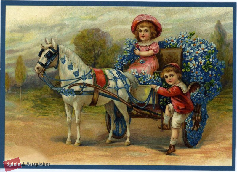 Postkarte vermenschlichte Tiere beglittert 6Vg051