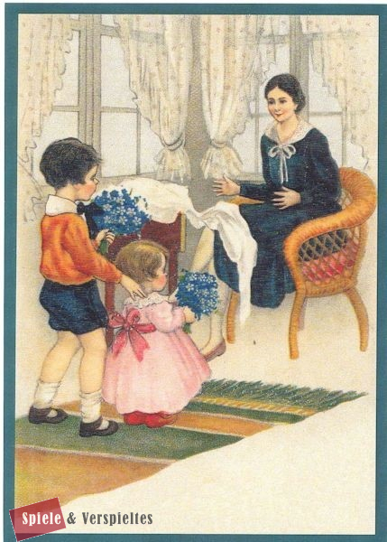 Postkarte vermenschlichte Tiere beglittert 6Vg066