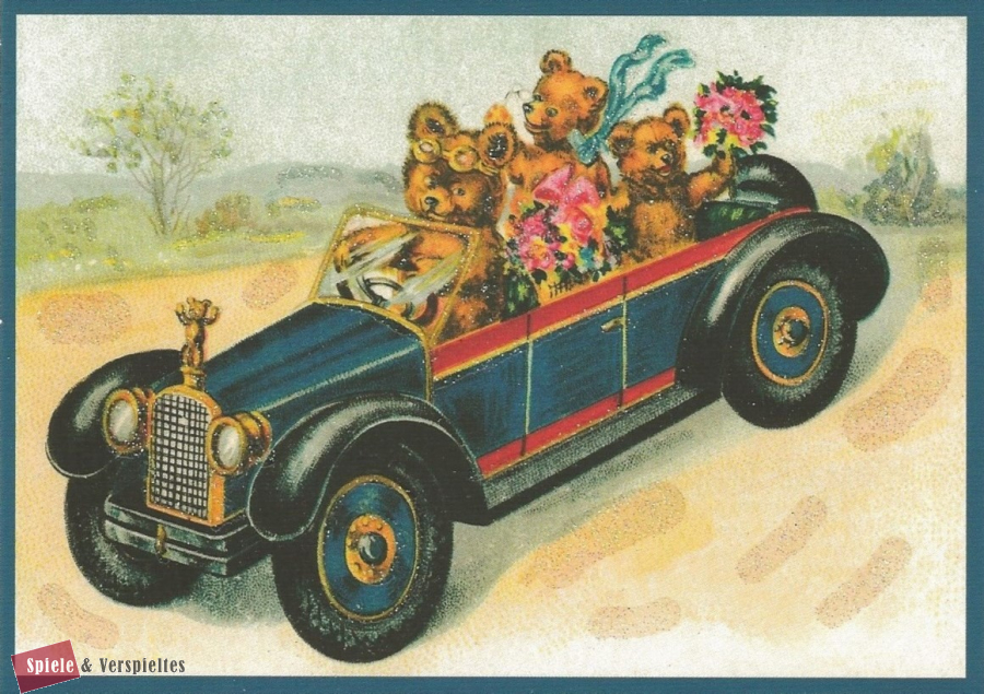 Postkarte vermenschlichte Tiere beglittert 6Vg031