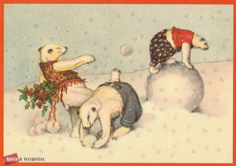 Postkarte vermenschlichte Tiere beglittert 6Vg041