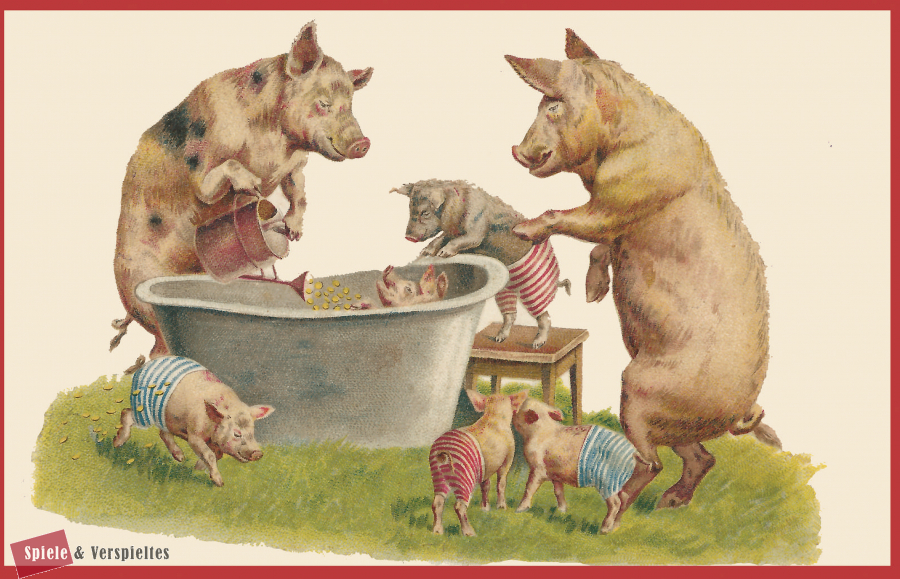 Postkarte  vermenschlichte Tiere beglittert 6Vg004
