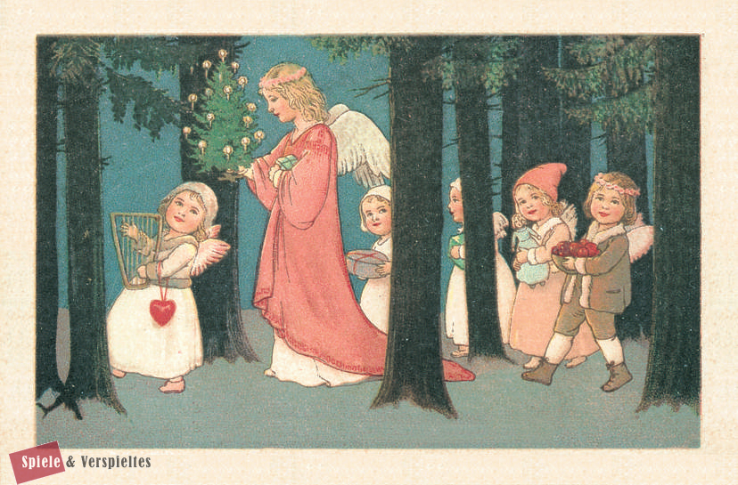Postkarte  vermenschlichte Tiere beglittert 6Vg004