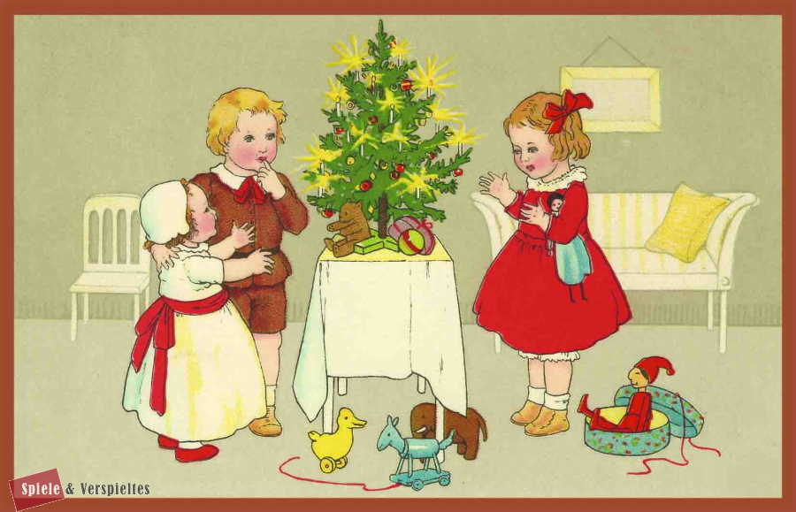 Postkarte vermenschlichte Tiere beglittert 6Vg030