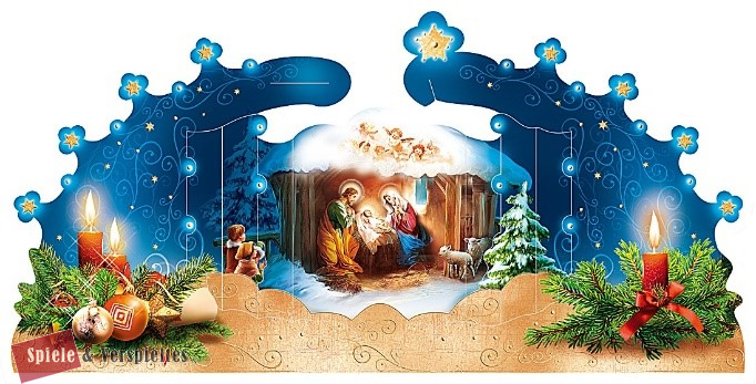- Faltkrippe aus Papier zum Zusammenstecken mit hochglänzender Veredelung, beglittert, Breite 22 cm, Höhe 11 cm