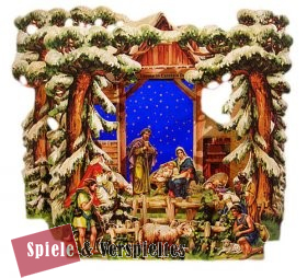 - Faltkrippe aus Papier mit matter Veredelung, Breite 27 cm, Höhe 20 cm, im Sternenumschlag VE 10 Stück